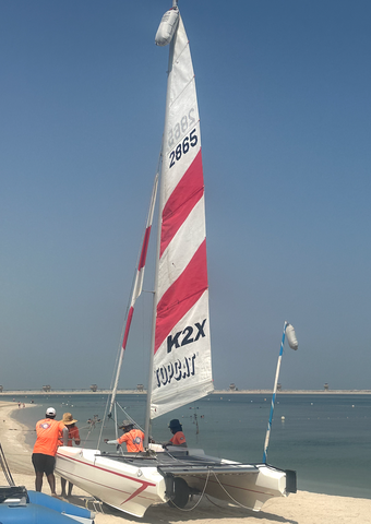 Comes complete and ready to sail and can be stored (for a fee) at the current location on The Palm.
