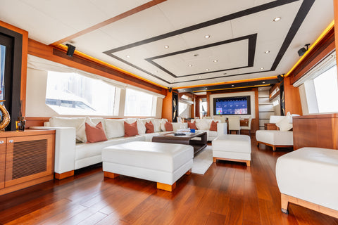 Ignite your senses with a sizzling yacht rental Dubai on the Yacht Caliente, a sleek 96ft vessel crafted for thrill-seeking adventurers and luxury lovers alike. This beauty features open-air jacuzzis, premium sound systems, and shaded alfresco dining areas, making it the ultimate choice for vibrant private yacht charters UAE. Cruise Dubai's iconic coastline, from the Atlantis Aquaventure to the serene sands of Jumeirah Beach, with opportunities for water sports, snorkeling, or simply basking in the sun. Our attentive crew serves up fresh seafood BBQs, signature cocktails, and bespoke amenities to match your vibe. Hosting up to 40 guests, Yacht Caliente is perfect for corporate events, family outings, or romantic escapes under the stars. As a top yacht tour Dubai option, it captures the essence of Arabian hospitality fused with modern elegance. Secure your spot for an exhilarating half-day or full-day journey starting at AED6,600—reach out to Blue Ocean Sports and set sail toward sun-soaked serenity!
